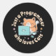 Awesome and funny design showing a cat on the computer and the saying "Just a programmer who loves cats". A must for all programmers and cat lovers.