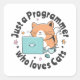Awesome and funny design showing a cat on the computer and the saying "Just a programmer who loves cats". A must for all programmers and cat lovers.