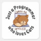 Awesome and funny design showing a cat on the computer and the saying "Just a programmer who loves cats". A must for all programmers and cat lovers.