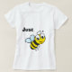 Simple, fun design with the word Just and bee cartoon. Funny take on the quote Just be.