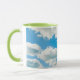 Just relax with a warm beverage in the cloud-covered white mug with green trim and 'breathe...just breathe' message