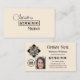 Business card featuring a minimalist black and ivory design with custom shapes. On the back is a QR code template as well as templates for your logo and custom photo. Modern with a classic/classy touch.