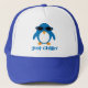 Customisable blue and white Just Chillin' cap with a cool cute penguin wearing sunglasess. A fun summer cap. Great for the beach! Text and font are customisable - I have doubled up the text to create a drop shadow, so if you want to change it you will need to edit both text boxes. If you need any assistance with customising your product please contact me through my store and I will be happy to help.