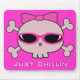 Just Chillin' Pink Cartoon Skull With Sunglasses Mouse Pad