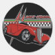 Hit the streets and Just go cruising! Colourful and sleek classic hot rod t-shirts and gifts for classic car, vintage car and hot rod lovers! Chequered retro background with red hot rod for car lovers!