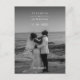 Share your elopement news with a modern classic text wedding announcement, great for pictures in black and white but also any colour as there is a black gradual gradient at the bottom and top of the card. Featuring white serif font centred on your photo, share the news of your nuptials with your family and friends and celebrate with a post-wedding celebration party.