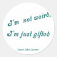 "I'm not weird, I'm just gifted" printed in green on a sheet of small or large stickers.