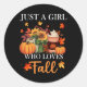 Just Girl Who Loves Fall Season Pumpkin Spice Leav Classic Round Sticker