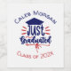 Graduation word art design features "just graduated" text with cap / mortarboard in red and blue school colours on grey background. Personalise with graduate's name and class year