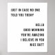 Just In Case No One Told You Today Hello Good Morning You're Amazing I Believe In You Nice Butt Minimal