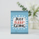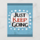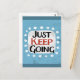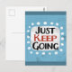 "Just Keep Going" is a super cute motivational inspirational typography design on light blue with white accent trim.
