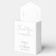 This sage green minimalist elegant script wedding favour box can be personalised with your information in modern typography. Designed by Thisisnotme©