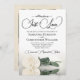 This beautiful wedding invitation features a single romantic long-stemmed ivory, white, or cream colored rose lying on its side reflecting in a pool of water. The heading is written in fancy script lettering and reads: Nothing Fancy, Just love. The back has space for your photo in an ivory colored frame. This invite is the perfect combination of modern and timeless - it's both classy and whimsical making it perfect for either a formal or casual ceremony.