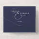 This all-in-one minimalist wedding invitation features elegant typography on a navy blue background. The invitation includes a perforated RSVP card with your wedding website QR code. Designed by Thisisnotme©
