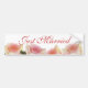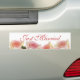 Delicate pink roses and the fancy script text, Just Married, make this bumper sticker a must have for any brides car.