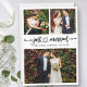 Modern Minimalist Simple Calligraphy Heart Script Just Married 3 Photo Wedding Announcement Card
