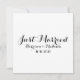 Just Married, custom script calligraphy text black and white Wedding Announcement card