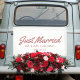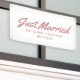 Celebrate your vintage-inspired wedding with our retro cursive "Just Married" banner, perfect for your getaway car. This charming banner, with its nostalgic cursive font, adds a fun and timeless touch to your grand exit, making your departure as memorable as the rest of your special day.