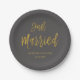 Just Married Charcoal Grey and Gold Foil Paper Plate