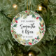Just Married Christmas Wedding Ceramic Ornament. Celebrate your first Christmas as a married couple in style. Our customisable template allows you to create a one-of-a-kind ornament that captures the love and joy of this memorable milestone.Add your names, wedding date, or even a special message to make it truly unique. It's the perfect keepsake to cherish for years to come!
