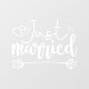 Spread the news of your wedding with this romantic white "Just Married" sticker featuring a modern white script font text decorated with lovely hearts.