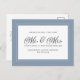 Just Married Elopement Dusty Blue White Elegant Invitation Postcard