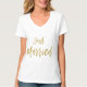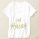 Just Married Gold Foil Typography T-Shirt for a newlywed on her honeymoon.