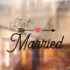Just Married—window cling. Elegant script font with a red heart arrow illustration. Simple and sweet black lettering. Order one for the back window of your car and let the world know you just got married!