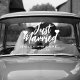 Celebrate your holy matrimony in style with this cute Just Married car window cling. Apply it to your honeymoon vehicle rear window. Customise it by the bride and groom's name and wedding anniversary date.