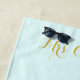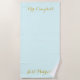 Beach towel in mint green with the text in gold: Just Married! and easily customisable the name of the newly-wed. Great gift for a wedding to use on a honeymoon vacation by a newlyweds couple.