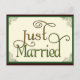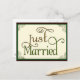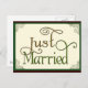 Here's a great way to let everyone know you've found your perfect mate! This "just married" design is perfect for the newlyweds. Just married is in a fun swirly font with chestnut brown and forest green.
