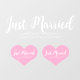 Celebrate the wedding get-away with this Just Married elegant script window cling. I set this up with room for two bonus side window clings. You just have to easily cut them apart from the main sign. You can customise all of the text and colours. White usually works best on car windows though. You can even change the pink hearts to a colour that matches the theme of your wedding. These are perfect to use on your car or limo windows. They are great for a car or limousine service too!