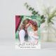 Modern Trendy Calligraphy Just Married Wedding Photo Wedding Announcement Postcard