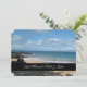 Just Married photo card shown with a photo print of a beautiful beach in Hawaii with a ribbon accent in black with text,customise this card and change the photo to yours,change the text to yours,you can even put a message on the back.