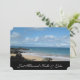 Just Married photo card shown with a photo print of a beautiful beach in Hawaii with a black accent with text, customise this card and change the photo to yours, change the text to yours, you can even put a message on the back.