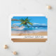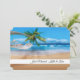 Just Married photo card shown with a photo print of a beautiful beach in Hawaii with custom sample names shown, customise this card and change the photo to yours, change the text to yours, you can even put a message on the back.