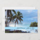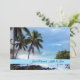 Just Married photo card shown with a photo print of a beautiful beach in Hawaii with custom sample names shown, customise this card and change the photo to yours, change the text to yours, you can even put a message on the back.