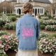 Just married script denim for newly wed bride.the design features retro hearts in pink.