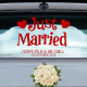 Celebrate your special day in style with this red romantic Just Married Wedding Car Window Cling. Designed with a beautiful vintage-style script, this decoration adds the perfect finishing touch to your getaway car as you leave your wedding celebration.