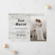 Share your wedding announcement news with this rustic bleached wood customisable photo wedding announcement card which features a vintage ambiance using Old English text for the heading.