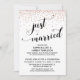 Here's a festive choice for your post-wedding celebration needs. Over an editable white background - change it to any colour you like - I've placed a typography graphic that reads "just married" featuring an elaborate script font embellished with hearts. Behind this header, faux-metallic copper glitter confetti seems to fall from above. Use the template fields to add your own details and click to customise further if you'd like to make any additional modifications. All layers are unlocked to allow for all the positioning and sizing control you desire.