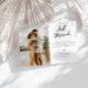 modern trendy photo card design with lovely black lettering. The bride and groom's image and back colour and text can be personalised.
