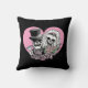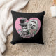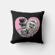 Bride and groom skulls dressed in their wedding finest, set on a pink heart with JUST MARRIED! text.