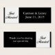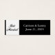 This small favour tag features a black background with Just Married in a black script and your personalised text in white. This is a simple way to personalise your favours. Personalise it on both the front and back. Coordinating products available.