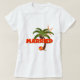 Matching bride and groom Just Married tropical theme T-shirts, mugs, tote bags, buttons, and more with the bride wearing one word of "Just Married" and the groom wearing the other!