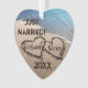 Now the popular heart shape is also in acrylic! Easily add your own custom names or any text (shown example says: "Just Married!", and just add the year desired) with names of the special couple or the bride and groom newlyweds in the hearts to personalise this beautiful popular heart shape ornament with an original photo of two hearts written in the sand along the blue ocean water to signify love and romance. Great concept for love, travel, just married, and upcoming summer save the date beach weddings. A fun, cute, personal and unique keepsake ornament to give to that special someone, girlfriend or boyfriend, bride and groom or any sweethearts couple-- just personalise the text as desired. This design is on both sides at no additional cost! See our big collection of gifts in this design in the MVDesigns store.