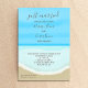 This just married invitation features a gorgeous digital watercolor of the ocean with waves coming onto the sandy beach. The words, "just married" appear in the sky. You can also customise your names and date of marriage in the sky. The beautiful ocean is the setting for your celebration party details with rsvp information in the sand. This is a lovely way to invite guests to your post wedding reception. Copyright henishouseofpaper