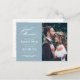 Announce your wedding to family and friends with classic and elegant custom photo wedding announcement cards in a postcard format. Features "Just Married" in a beautiful script font, a portrait photo space, and custom text on the front and back that can be personalised with your marriage ceremony information.