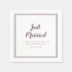“Just Married” wedding cocktail napkin in a modern, minimalist style featuring a double‑frame border in deep plum on crisp white. The clean layout and elegant script create a timeless, classic look that elevates any wedding bar or cocktail hour. Personalise the names and date to celebrate the new Mr. and Mrs. in a chic, contemporary way. Pair these napkins with the matching items in this collection for a cohesive reception look.