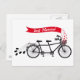 Just married, wedding tandem bicycle with ribbon and red hearts, design for cards, stickers, t-shirt, gift for her, gift for him, wedding gift, wedding shower